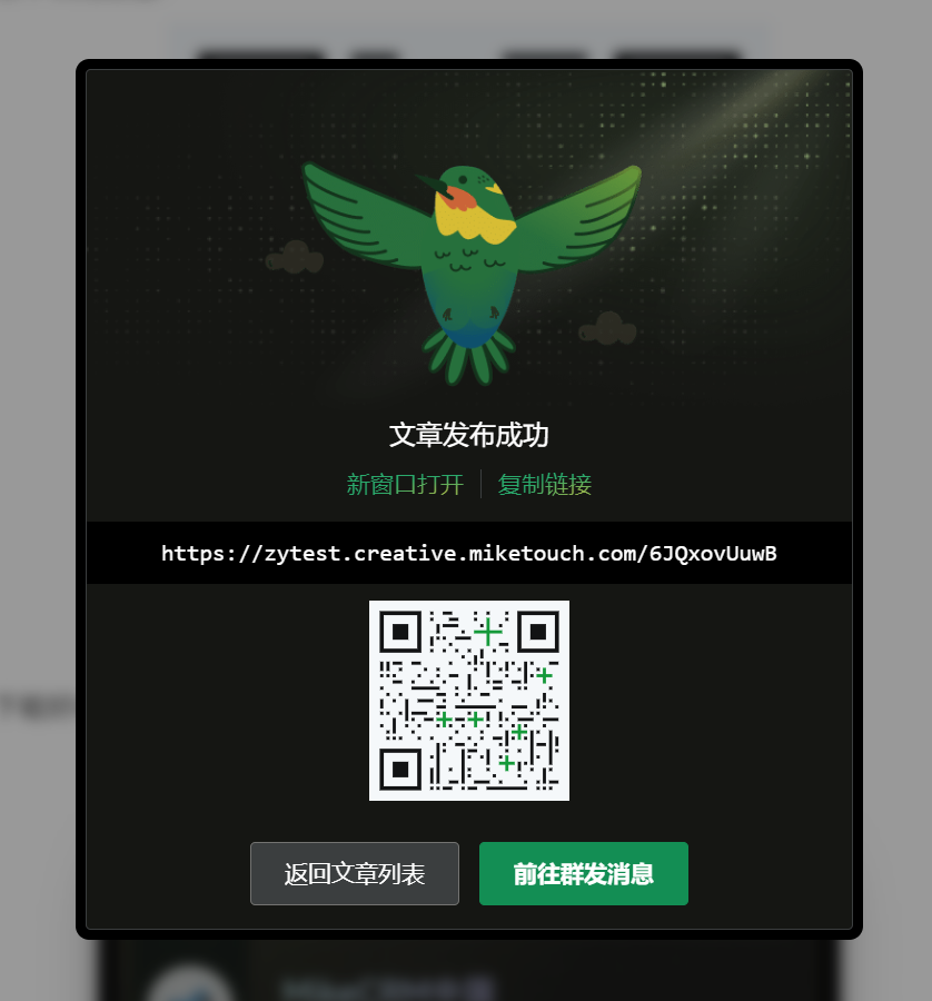 正文排版完成后可以点击底部按钮进行“发布”。文章发布成功,会拥有唯一的访问链接地址,以供外部访问阅读,查看文章示例>>