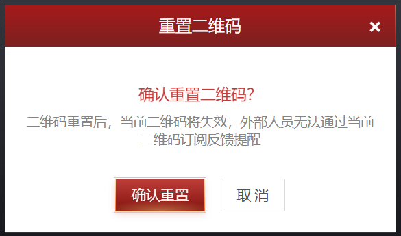 重置二维码会将当前二维码作废,已分发出去的订阅二维码都将失效。重置后,可以确保不会再有新的订阅用户通过旧的二维码完成订阅,同时也意味着已发放出去的物料海报都将一并失效,请慎重操作。