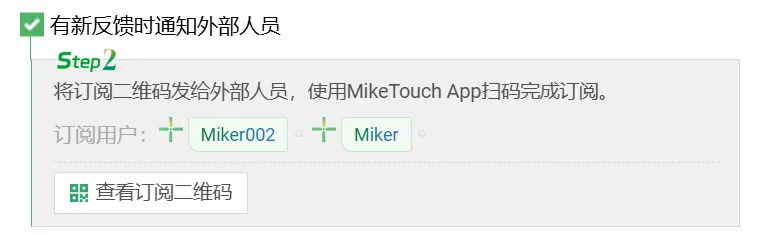 无需加入企业组织,不管是合作伙伴、客户对接人,还是项目协作方,只要用 MikeTouch 扫码,就能订阅表单反馈通知,告别 “信息壁垒”~
